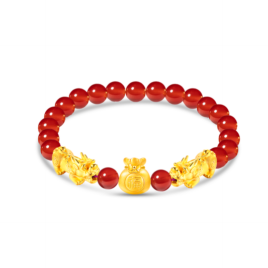 TAKA Jewellery 999 Pure Gold Pixiu with Beads Bracelet
