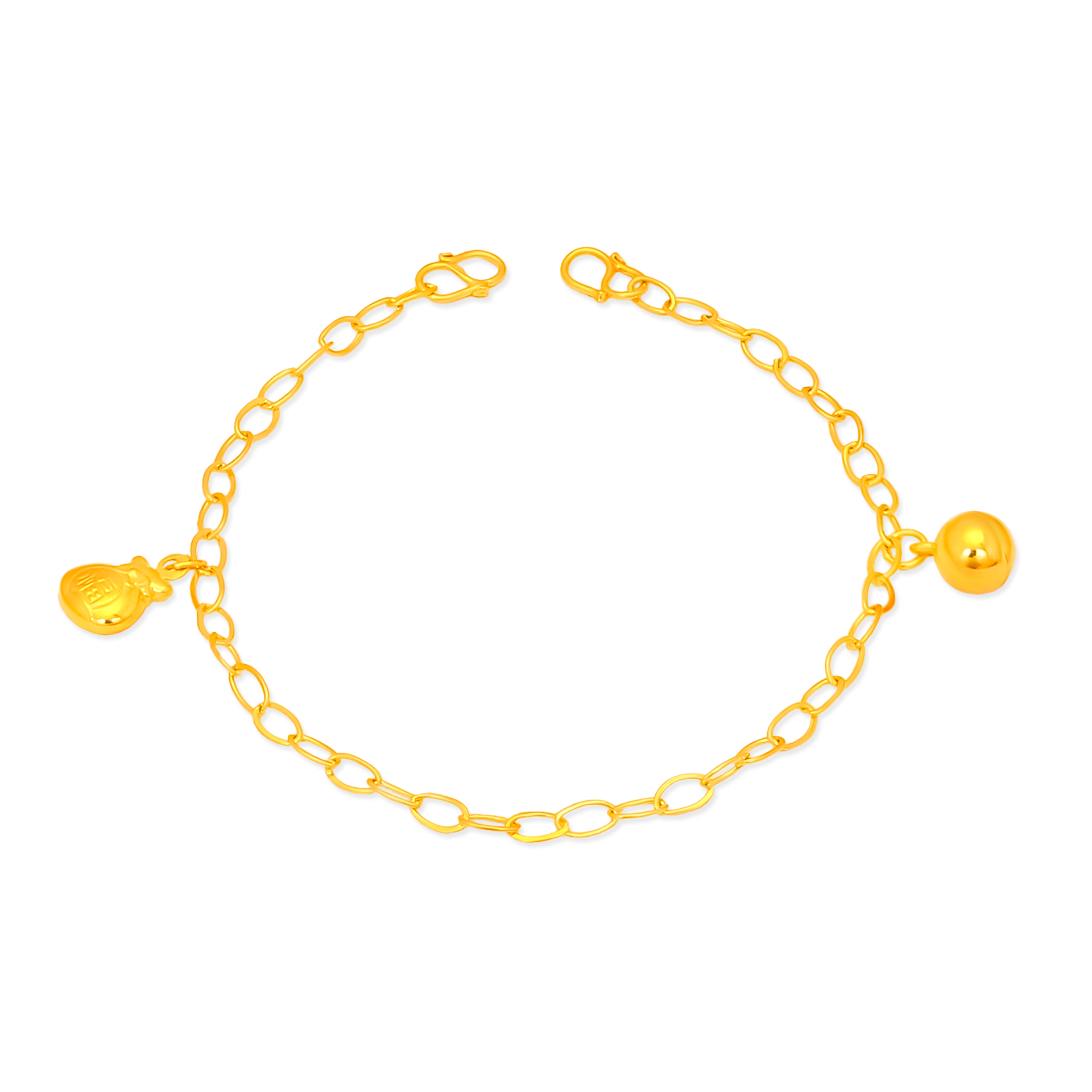 TAKA Jewellery 916 Gold Baby Anklet with Bell and Fortune Bag