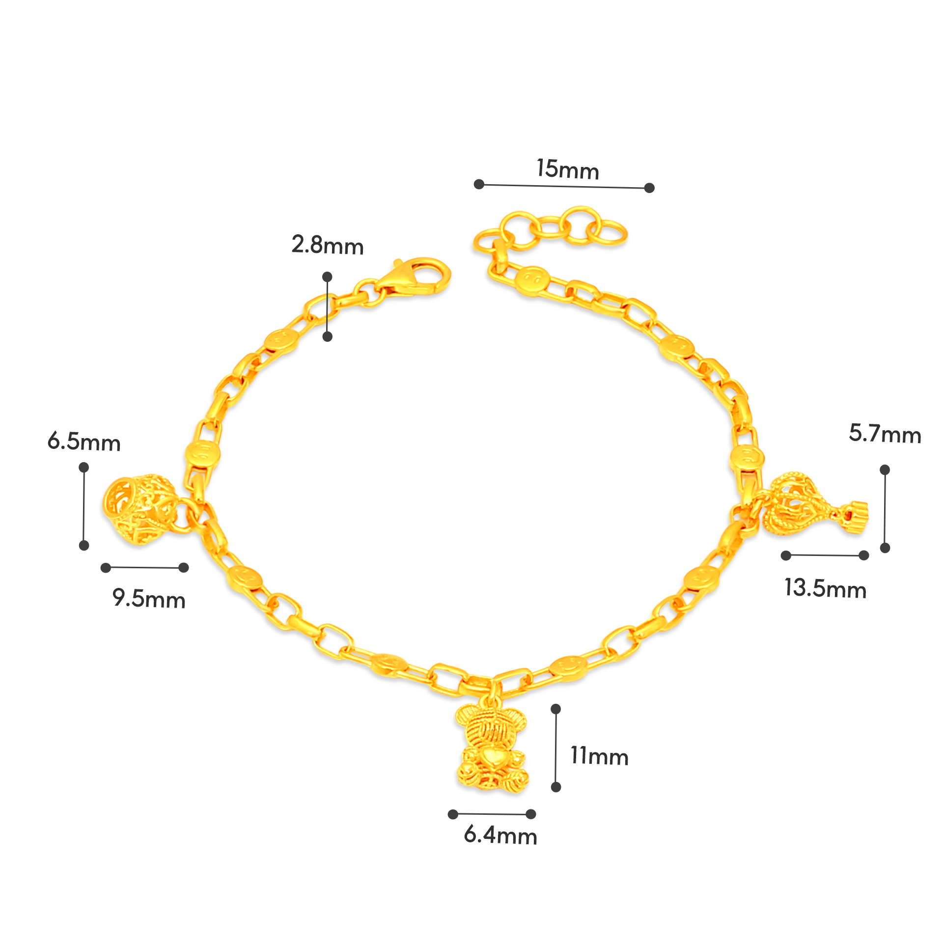 TAKA Jewellery 916 Gold Charm Bracelet