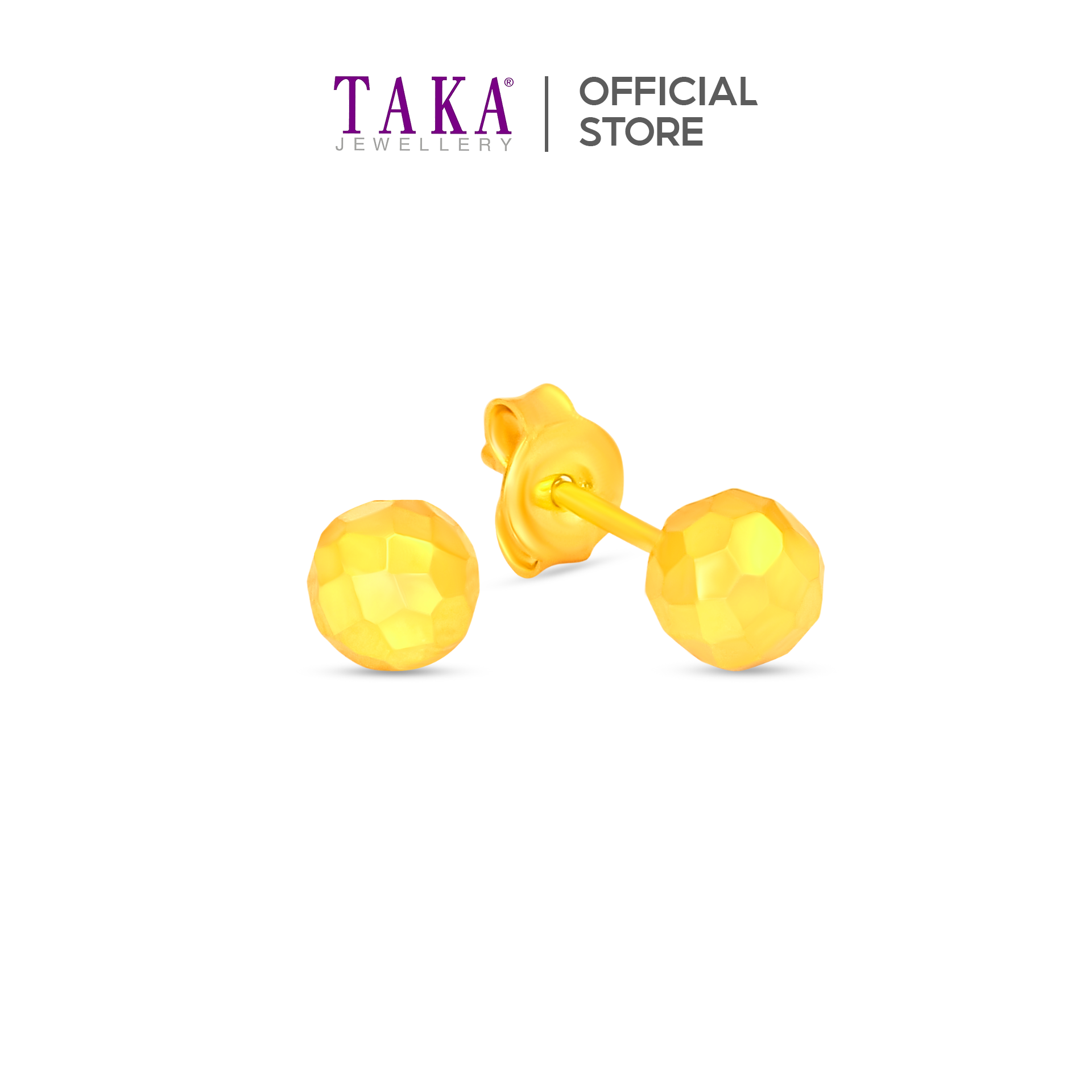TAKA Jewellery 916 Gold Earrings Ball with Cutting