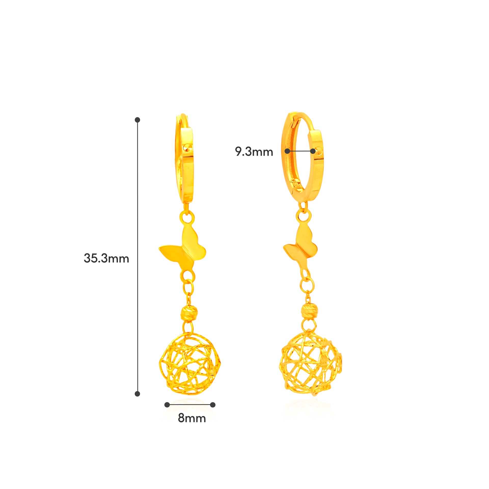 TAKA Jewellery 916 Gold Hoop Dangling Earrings