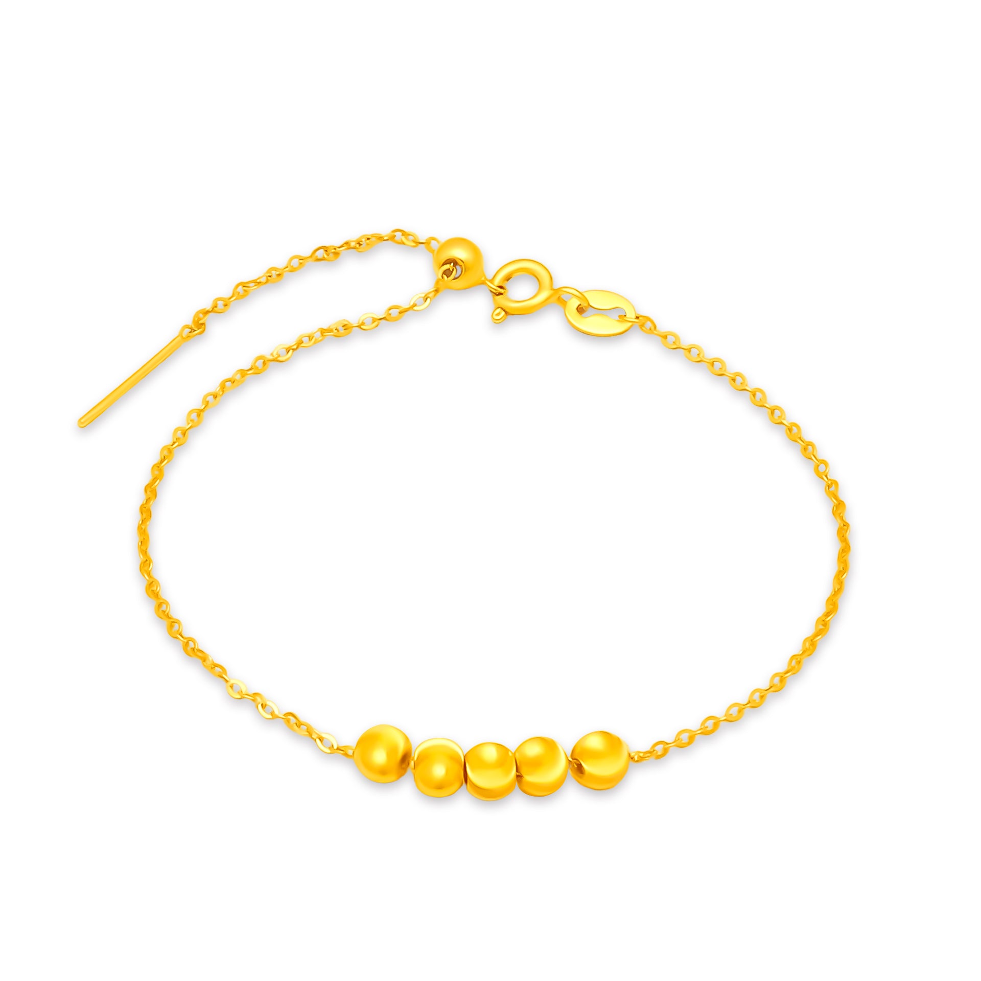 TAKA Jewellery 999 Pure Cat's Eye Gold Ball Charm with Silver Bracelet