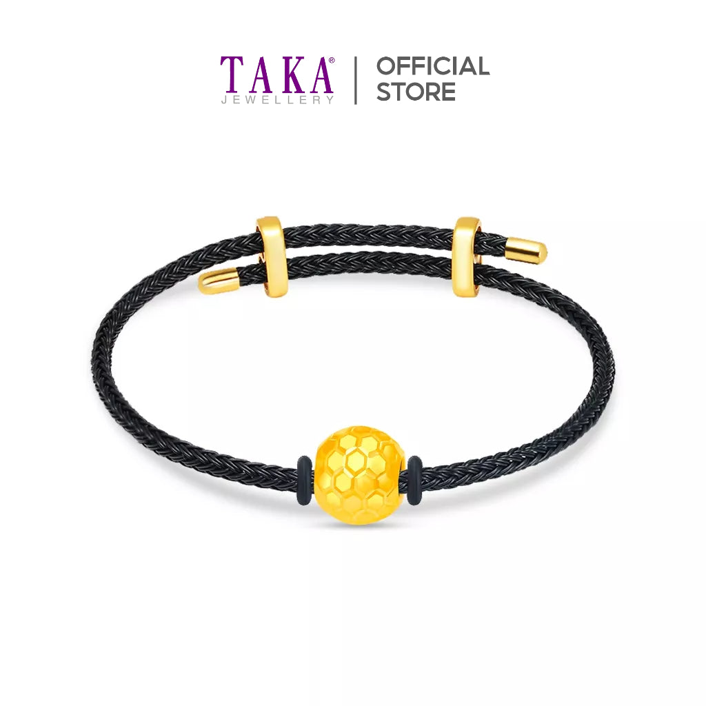 TAKA Jewellery 999 Pure Gold Ball Honeycomb with Cord Bracelet