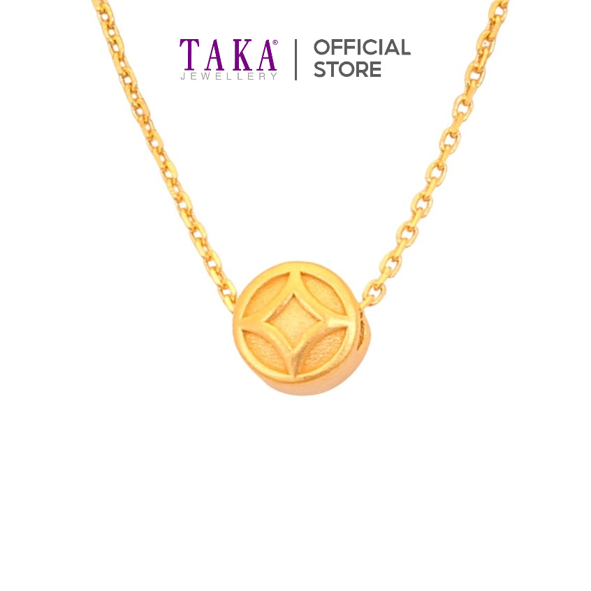 TAKA Jewellery 999 Pure Gold Coin Pendant with 9K Gold Chain