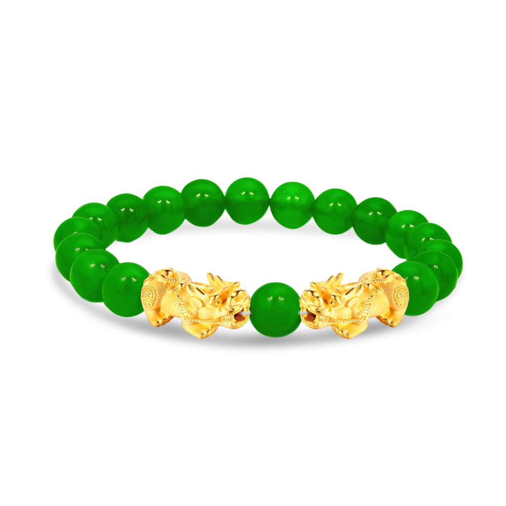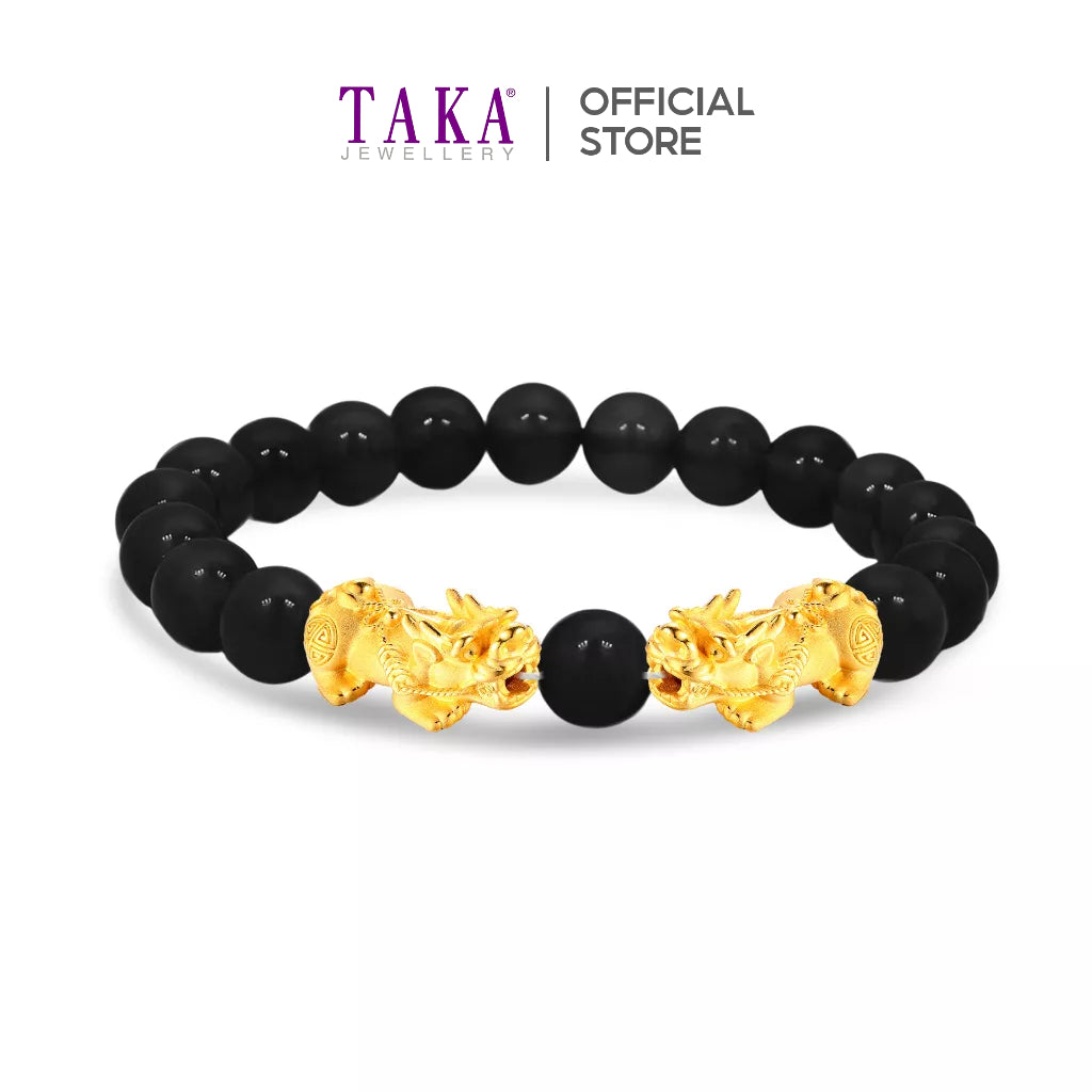TAKA Jewellery 999 Pure Gold Double Pixiu 8mm Beads Bracelet