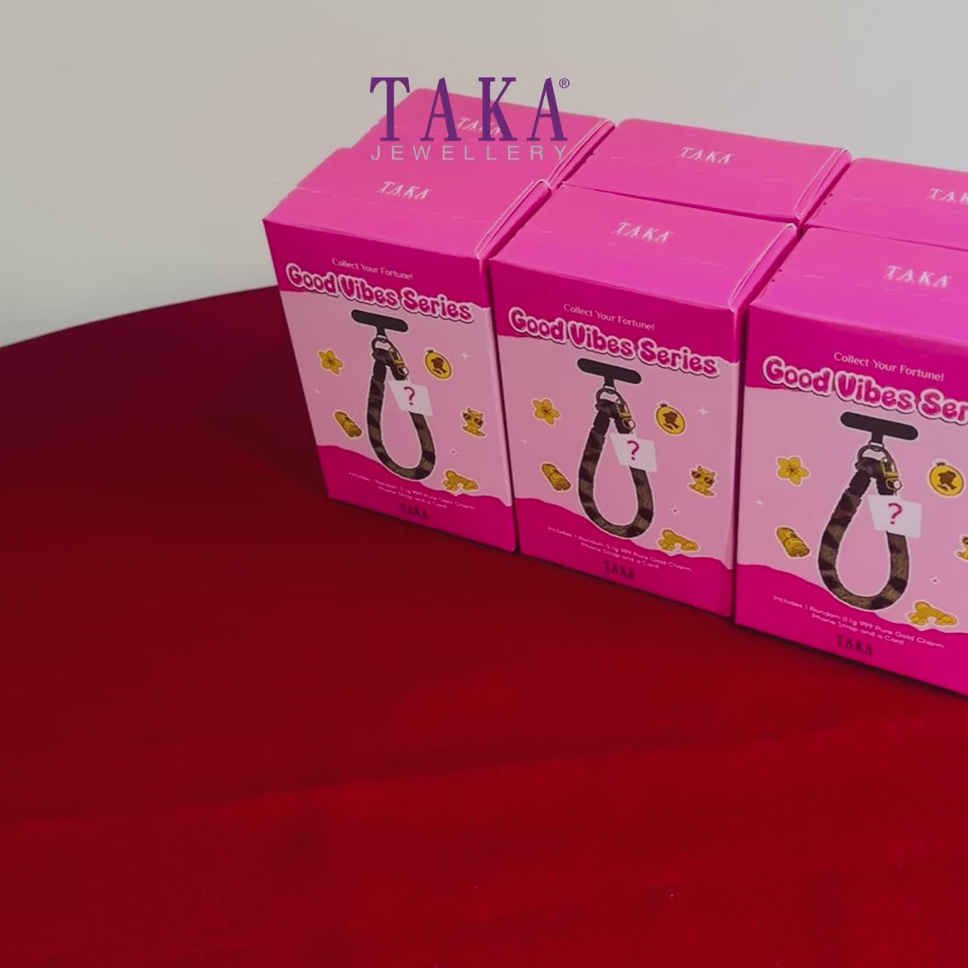 TAKA Jewellery 999 Pure Gold “Good Vibes” Blind Box Series | 0.1gm Gold Charm with Phone Strap