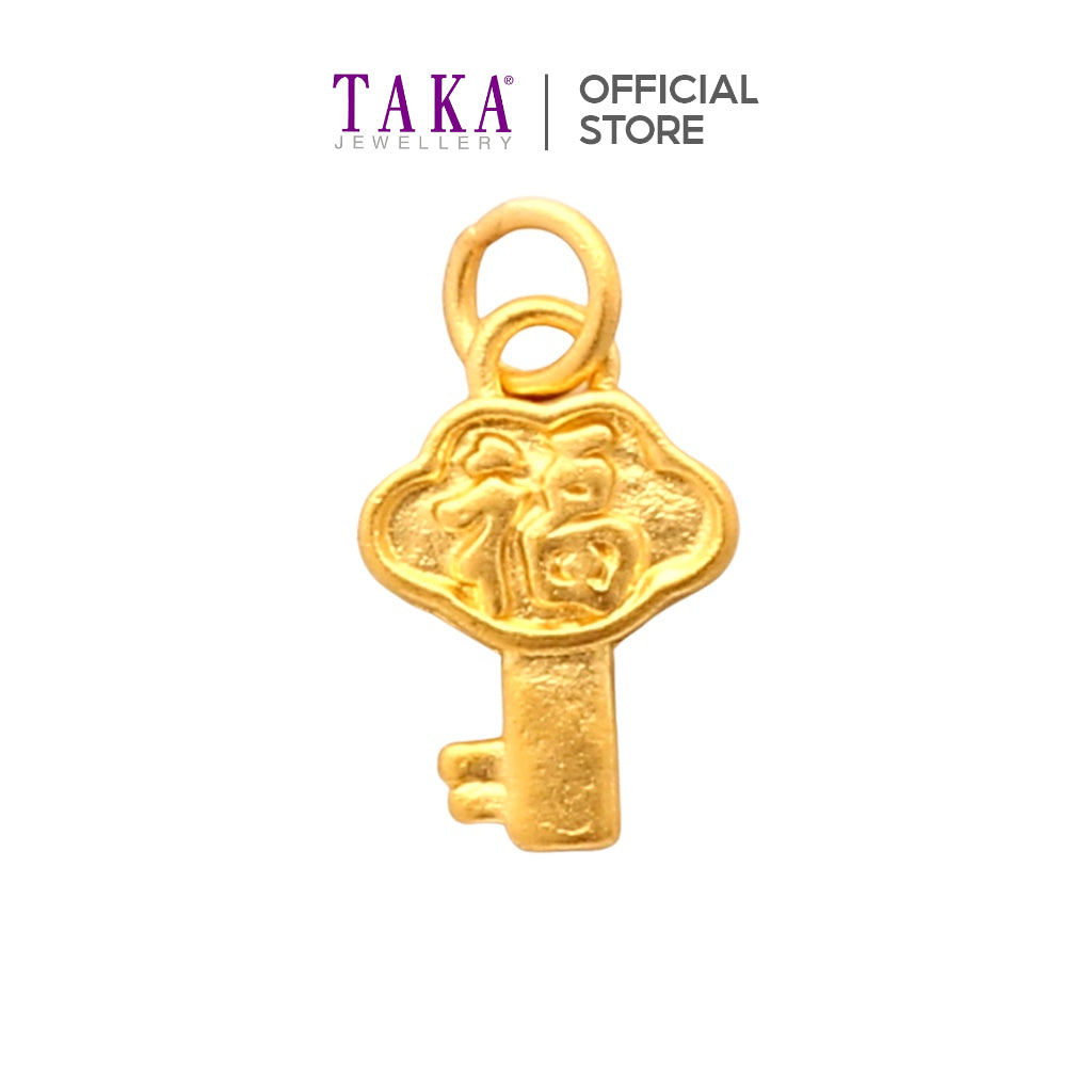 TAKA Jewellery 999 Pure Gold Mini Key With Fu Pendant