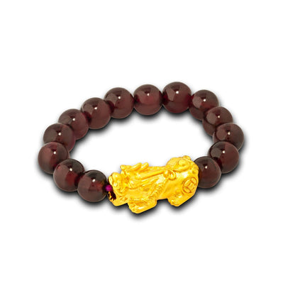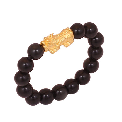 TAKA Jewellery 999 Pure Gold Mini Pixiu with 4mm Beads Ring